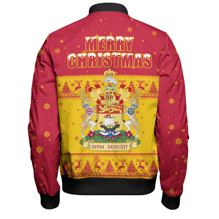 New Brunswick Bomber Jacket Christmas Knit Style Snowflake Reindeer
