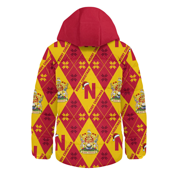 New Brunswick Hooded Padded Jacket Christmas Argyle Pattern With Royal Crest