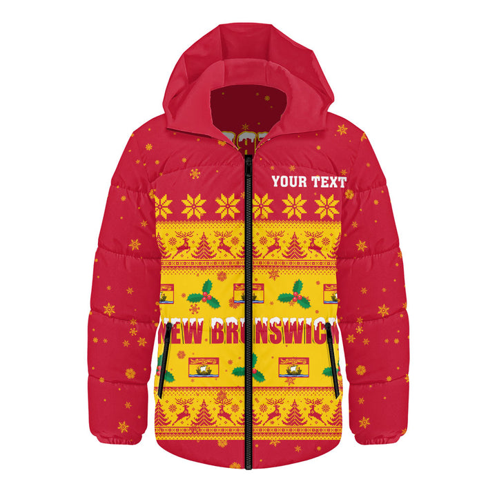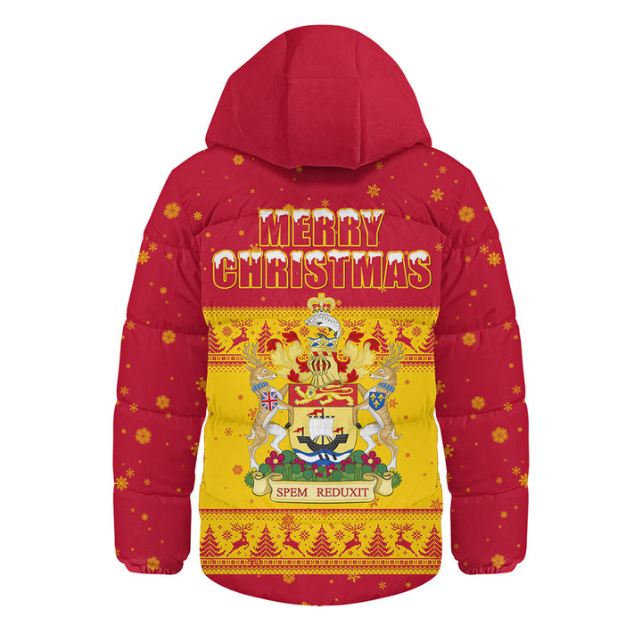 New Brunswick Hooded Padded Jacket Christmas Knit Style Snowflake Reindeer