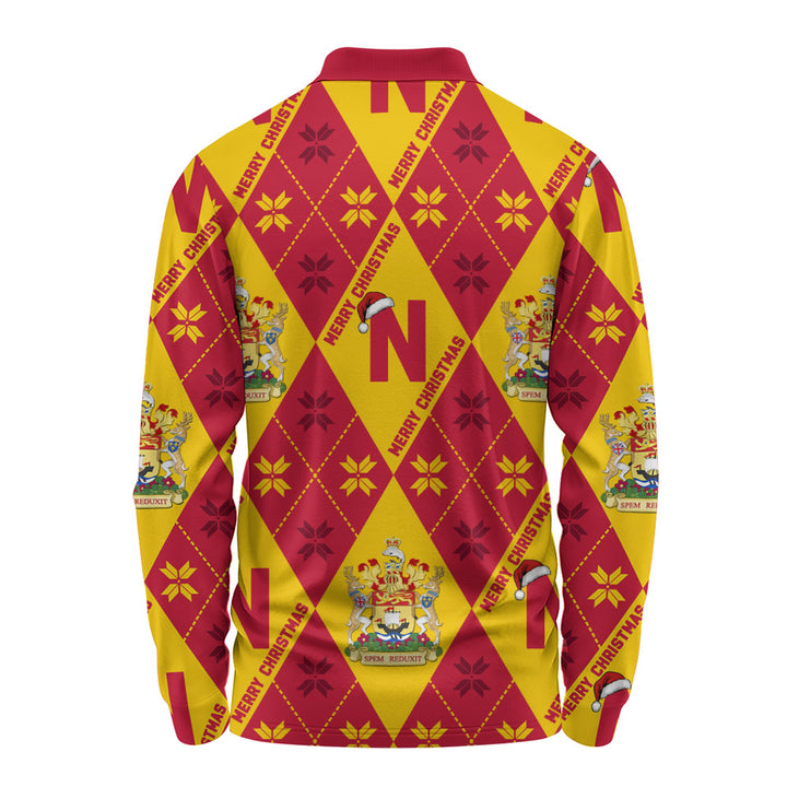 New Brunswick Long Sleeve Polo Shirt Christmas Argyle Pattern With Royal Crest