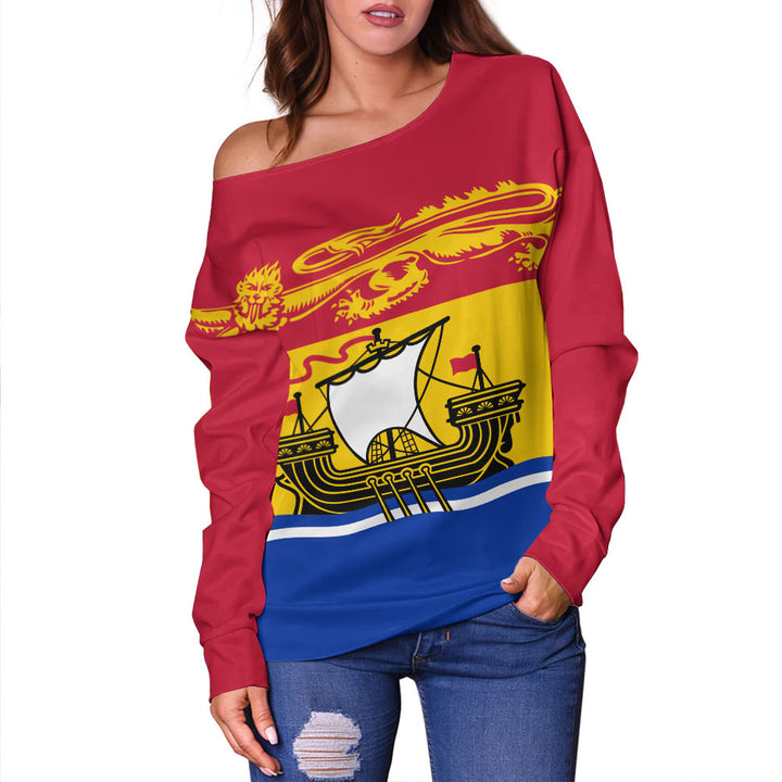 New Brunswick Off Shoulder Sweatshirt Flag Minimalist Pride Style