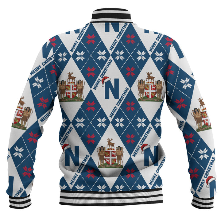 Newfoundland & Labrador Baseball Jacket Christmas Argyle Pattern With Royal Crest