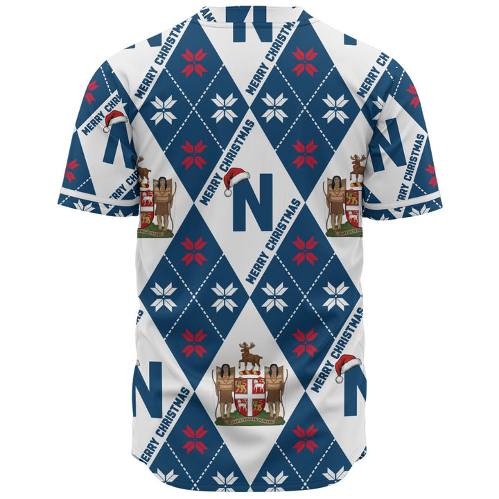 Newfoundland & Labrador Baseball Shirt Christmas Argyle Pattern With Royal Crest