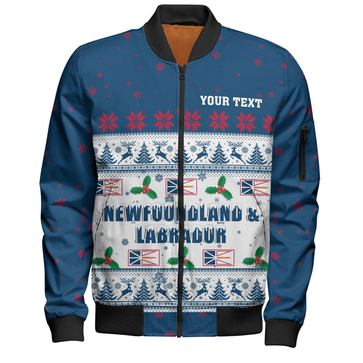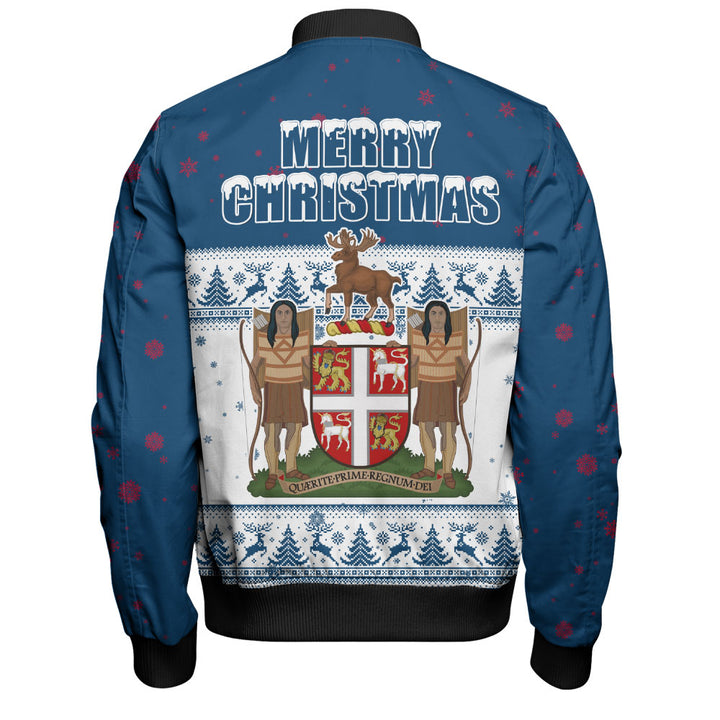 Newfoundland & Labrador Bomber Jacket Christmas Knit Style Snowflake Reindeer