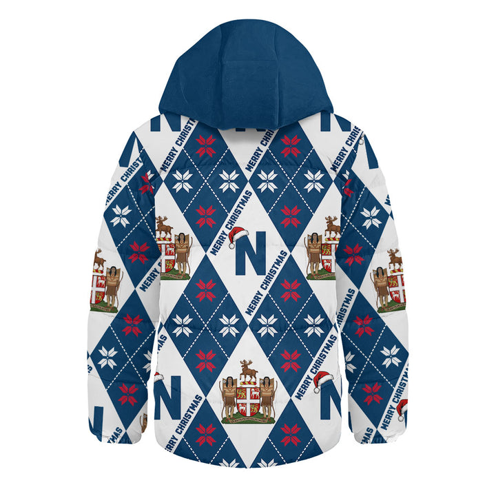 Newfoundland & Labrador Hooded Padded Jacket Christmas Argyle Pattern With Royal Crest