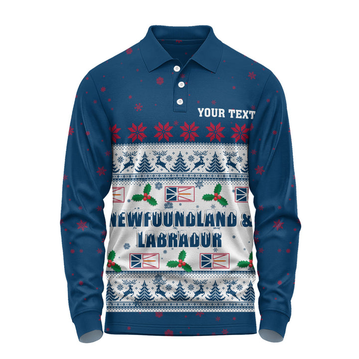 Newfoundland & Labrador Long Sleeve Polo Shirt Christmas Knit Style Snowflake Reindeer