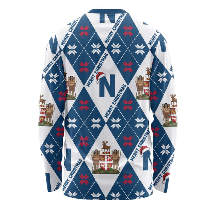 Newfoundland & Labrador Long Sleeve T-Shirt Christmas Argyle Pattern With Royal Crest