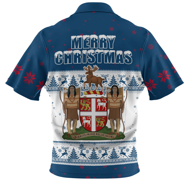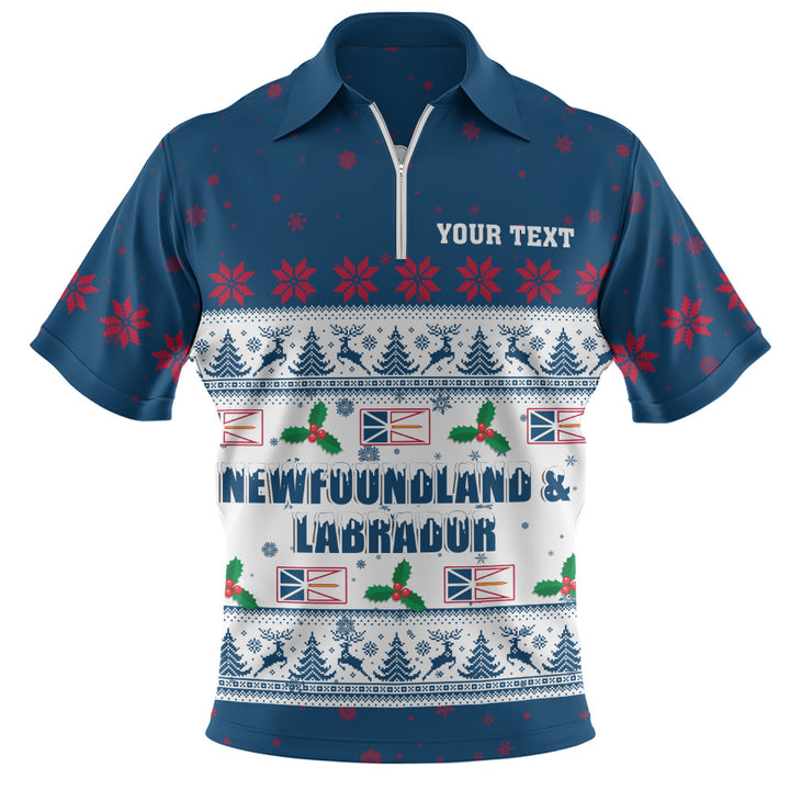 Newfoundland & Labrador Zip Polo Shirt Christmas Knit Style Snowflake Reindeer