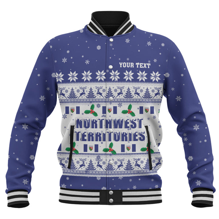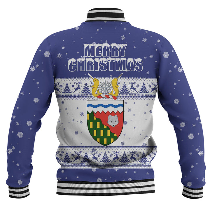 Northwest Territories Baseball Jacket Christmas Knit Style Snowflake Reindeer