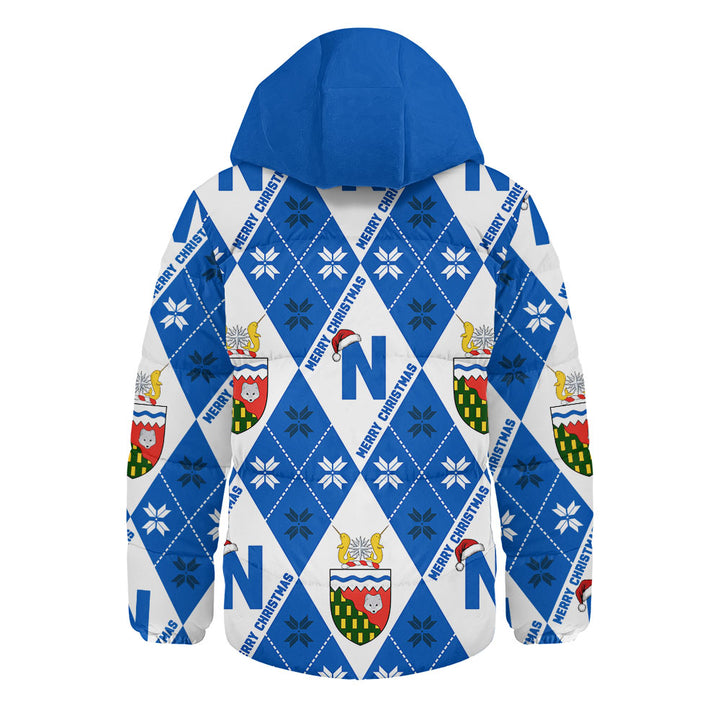 Northwest Territories Hooded Padded Jacket Christmas Argyle Pattern With Royal Crest