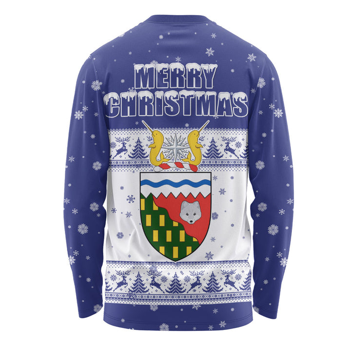 Northwest Territories Long Sleeve T-Shirt Christmas Knit Style Snowflake Reindeer