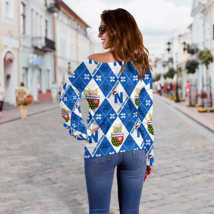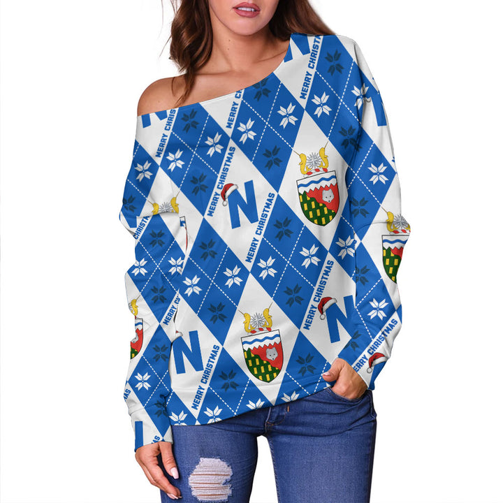Northwest Territories Off Shoulder Sweatshirt Christmas Argyle Pattern With Royal Crest