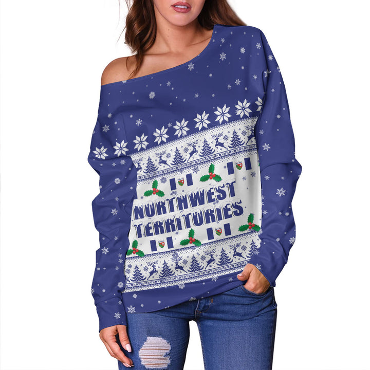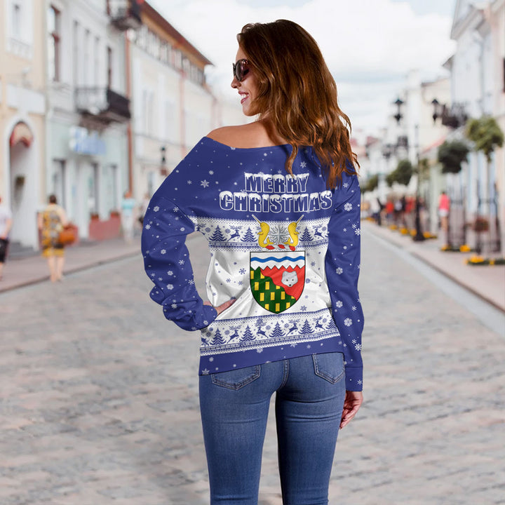 Northwest Territories Off Shoulder Sweatshirt Christmas Knit Style Snowflake Reindeer