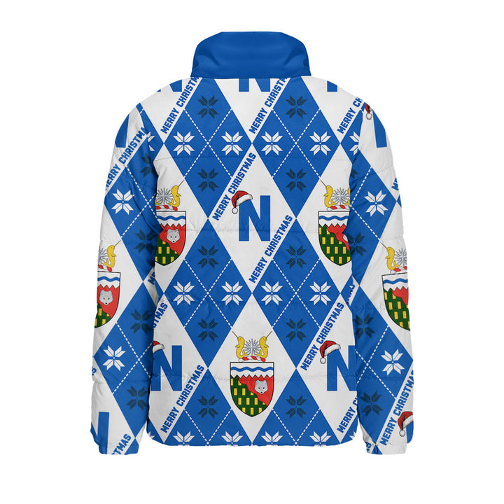Northwest Territories Padded Jacket Christmas Argyle Pattern With Royal Crest