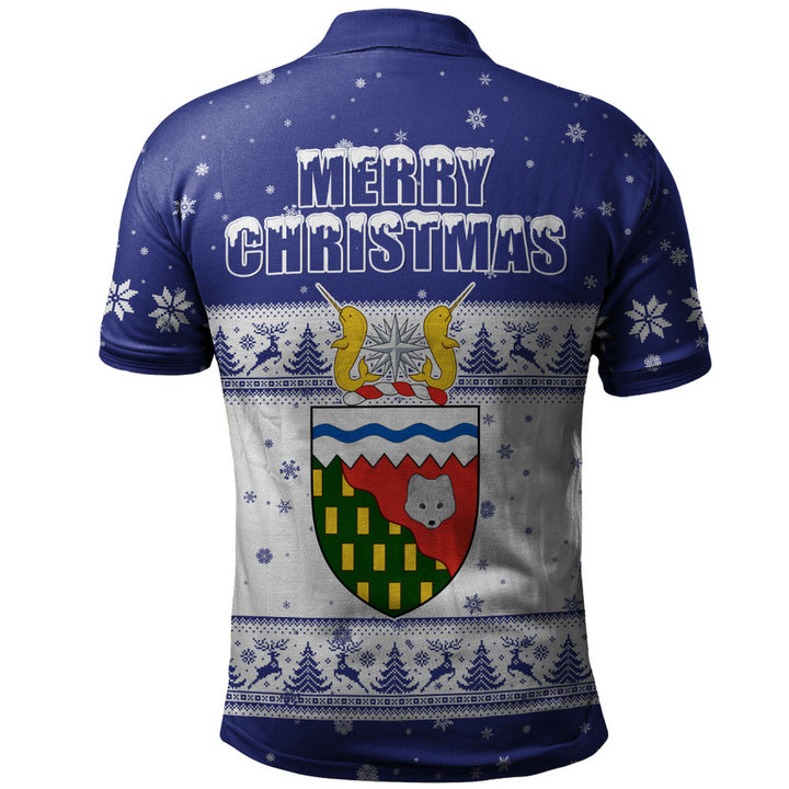 Northwest Territories Polo Shirt Christmas Knit Style Snowflake Reindeer