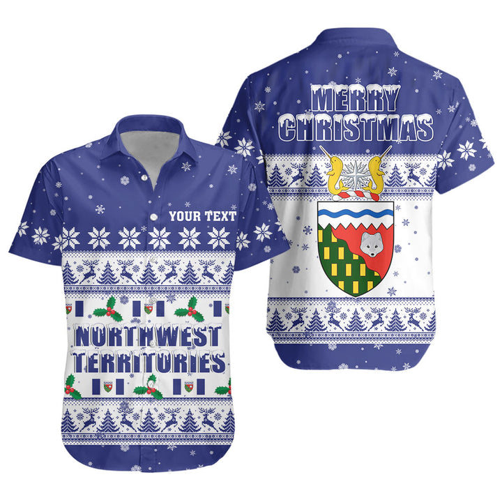 Northwest Territories Short Sleeve Shirt Christmas Knit Style Snowflake Reindeer