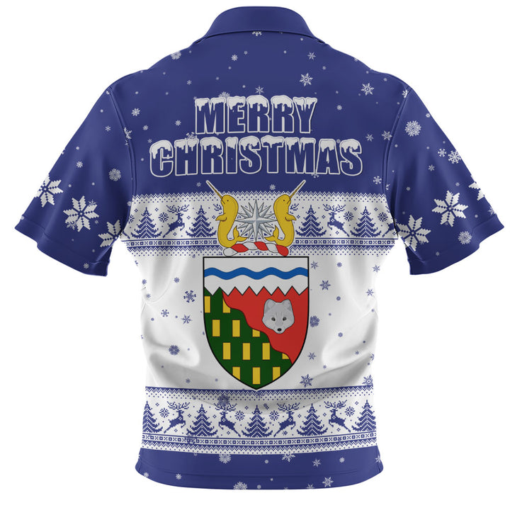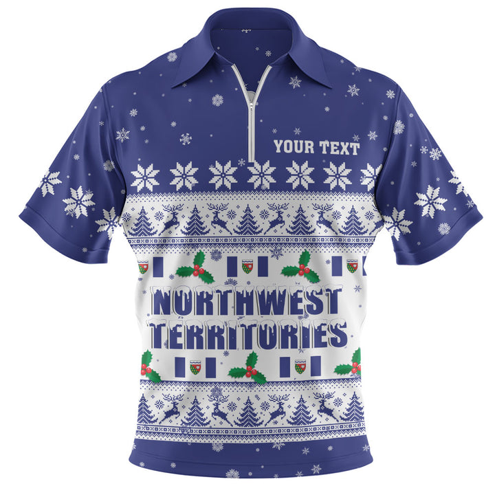 Northwest Territories Zip Polo Shirt Christmas Knit Style Snowflake Reindeer