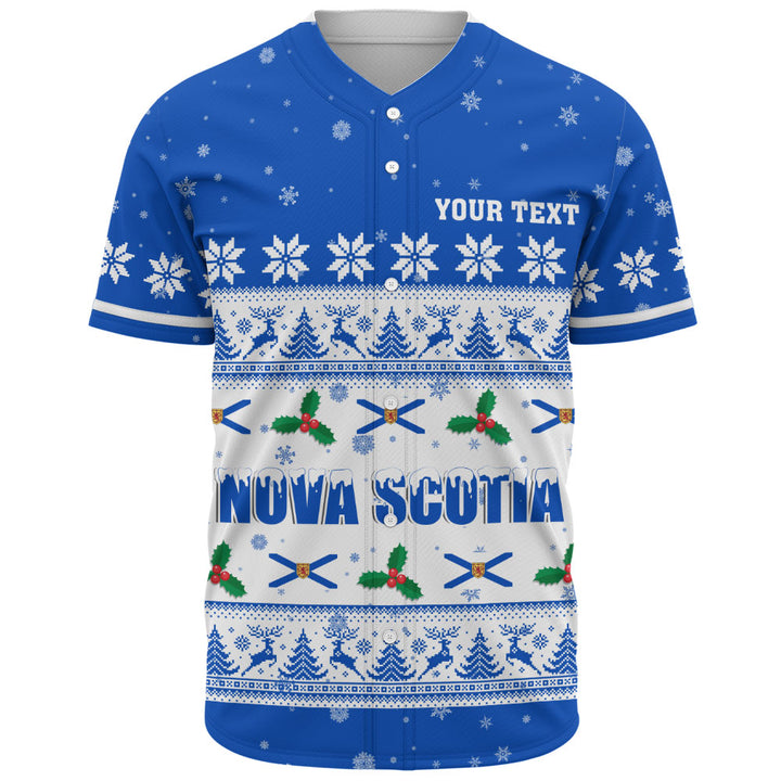 Nova Scotia Baseball Shirt Christmas Knit Style Snowflake Reindeer