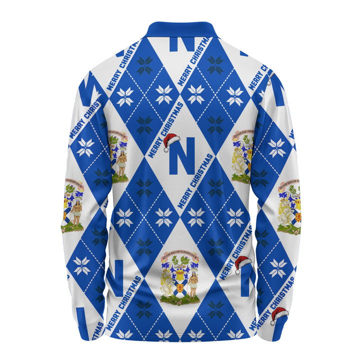 Nova Scotia Long Sleeve Polo Shirt Christmas Argyle Pattern With Royal Crest