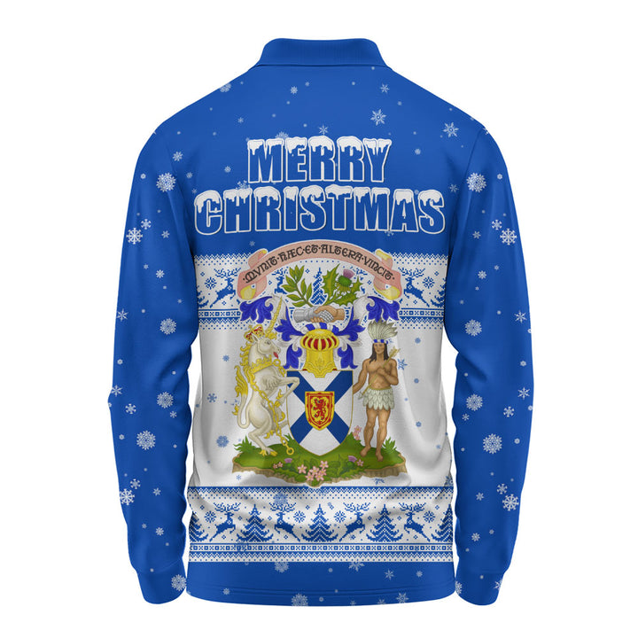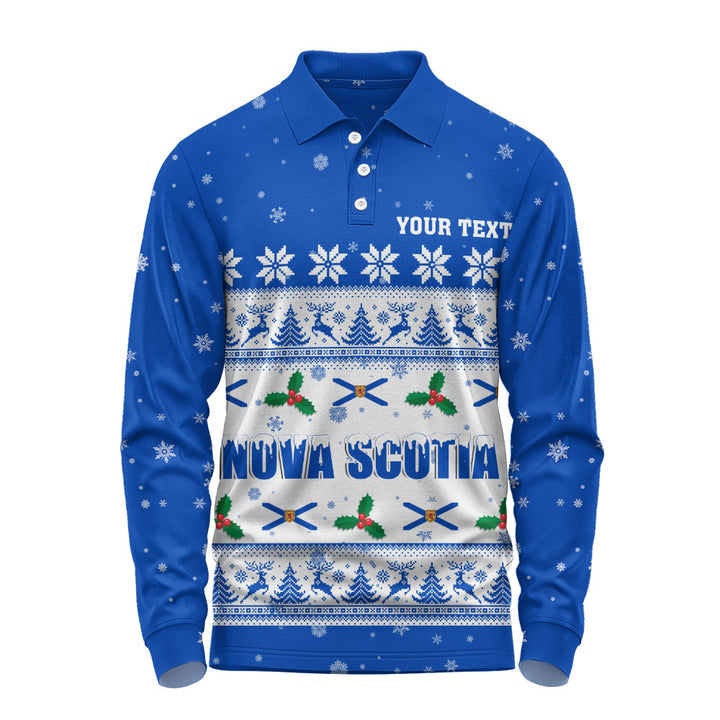 Nova Scotia Long Sleeve Polo Shirt Christmas Knit Style Snowflake Reindeer