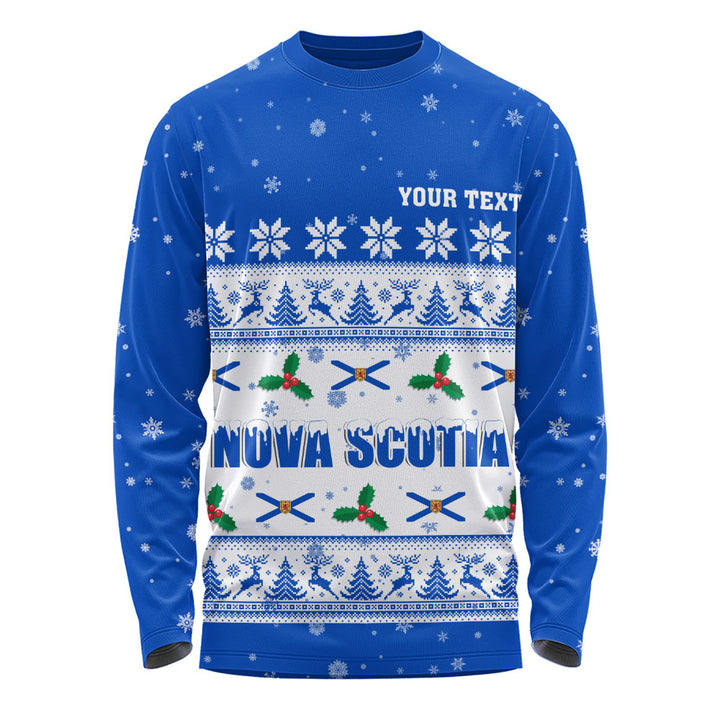 Nova Scotia Long Sleeve T-Shirt Christmas Knit Style Snowflake Reindeer