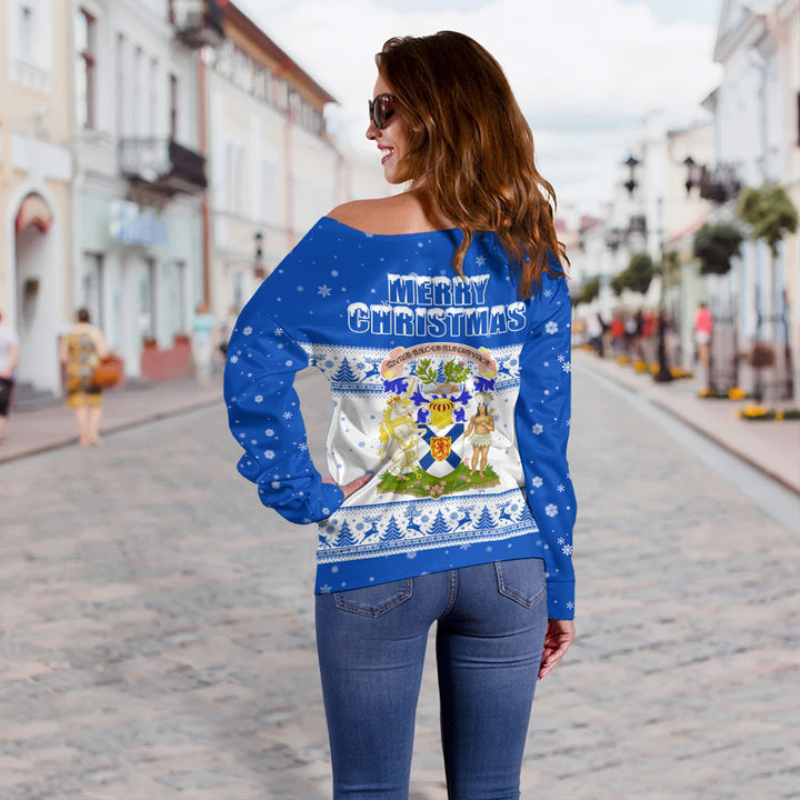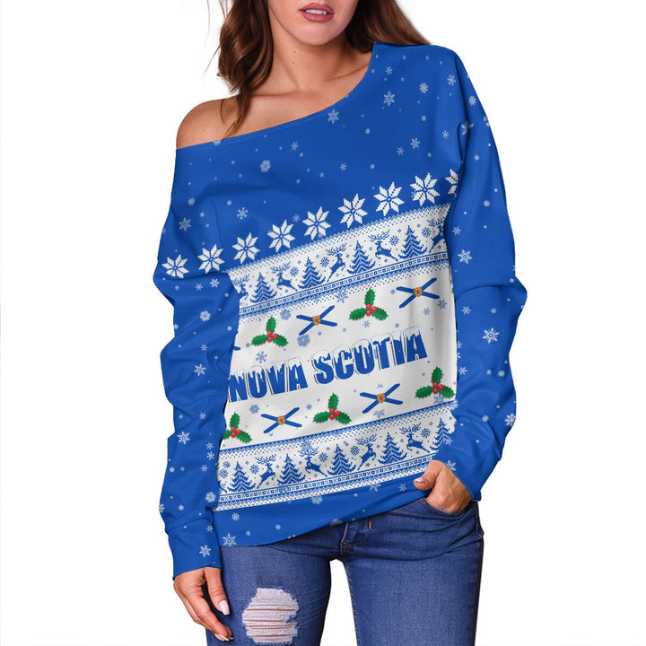 Nova Scotia Off Shoulder Sweatshirt Christmas Knit Style Snowflake Reindeer