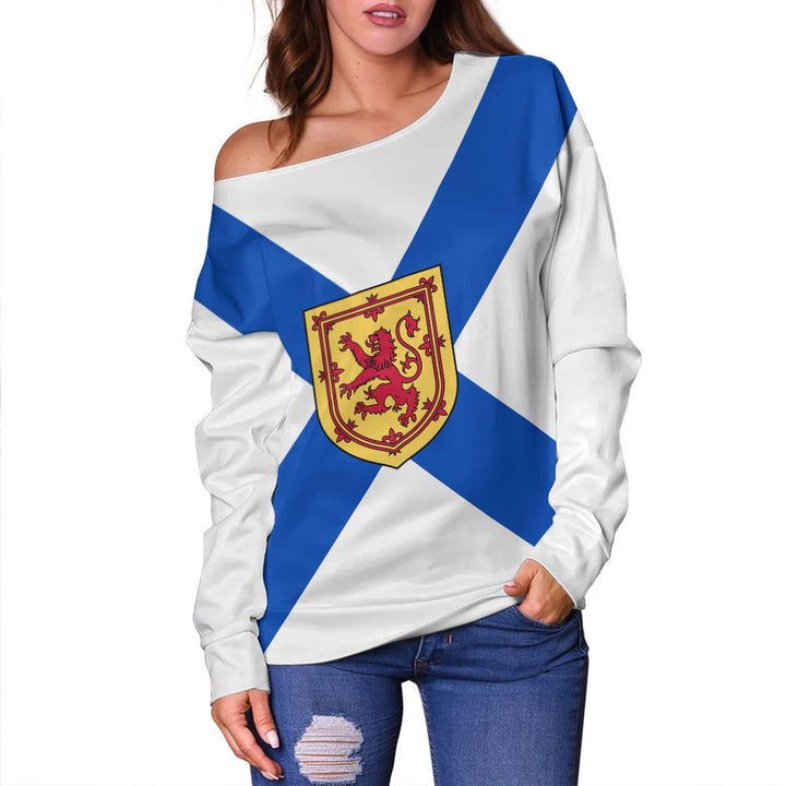 Nova Scotia Off Shoulder Sweatshirt Flag Minimalist Pride Style