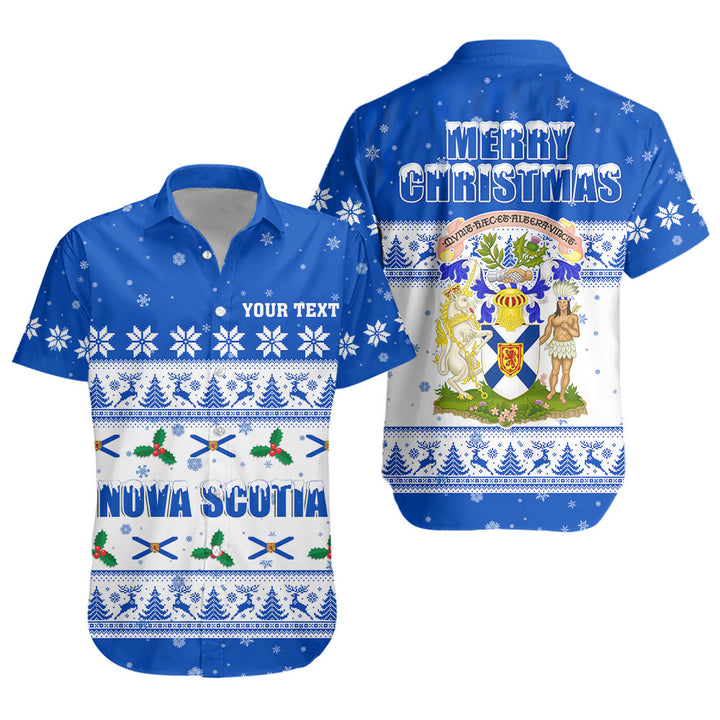 Nova Scotia Short Sleeve Shirt Christmas Knit Style Snowflake Reindeer