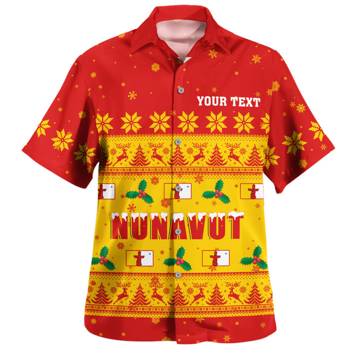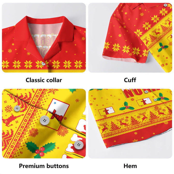 Nunavut Bowling Shirt Christmas Knit Style Snowflake Reindeer