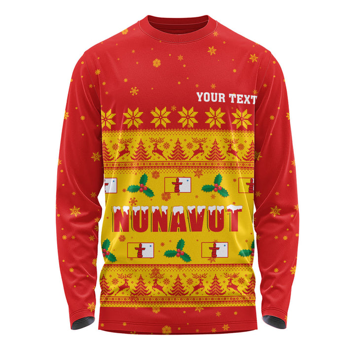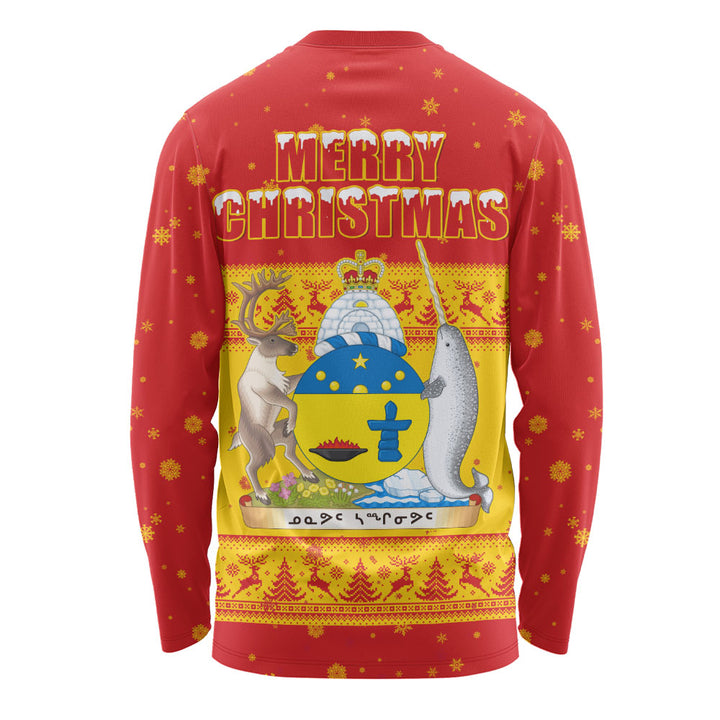 Nunavut Long Sleeve T-Shirt Christmas Knit Style Snowflake Reindeer