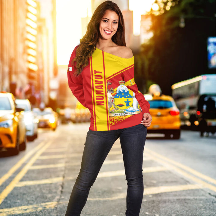 Nunavut Off Shoulder Sweatshirt Heritage Strength Crest