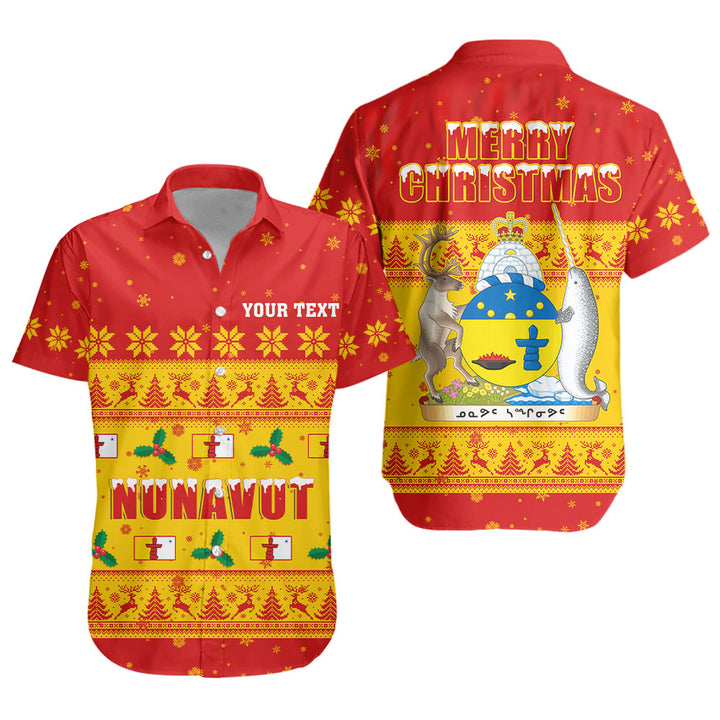 Nunavut Short Sleeve Shirt Christmas Knit Style Snowflake Reindeer