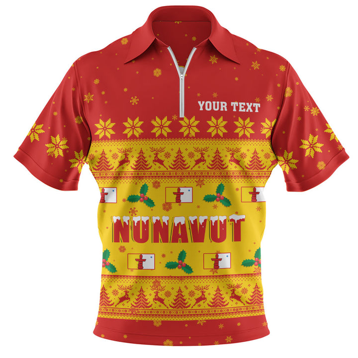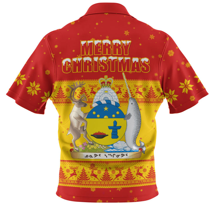 Nunavut Zip Polo Shirt Christmas Knit Style Snowflake Reindeer