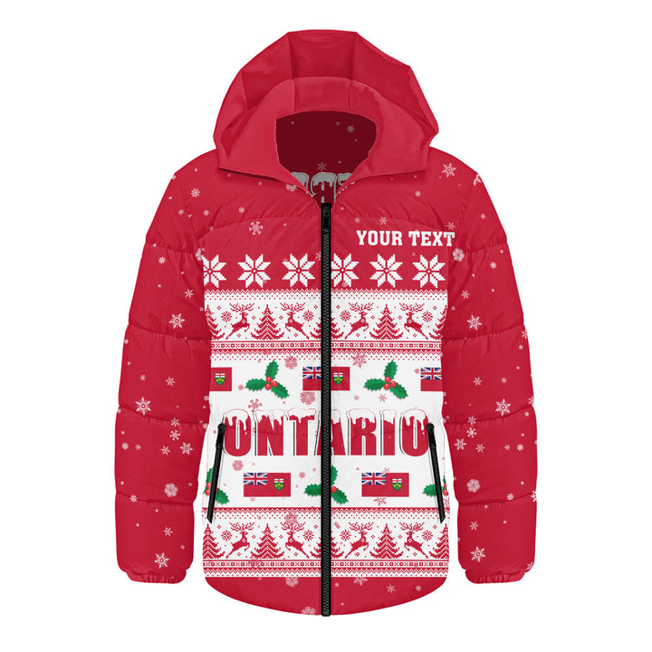 Ontario Hooded Padded Jacket Christmas Knit Style Snowflake Reindeer