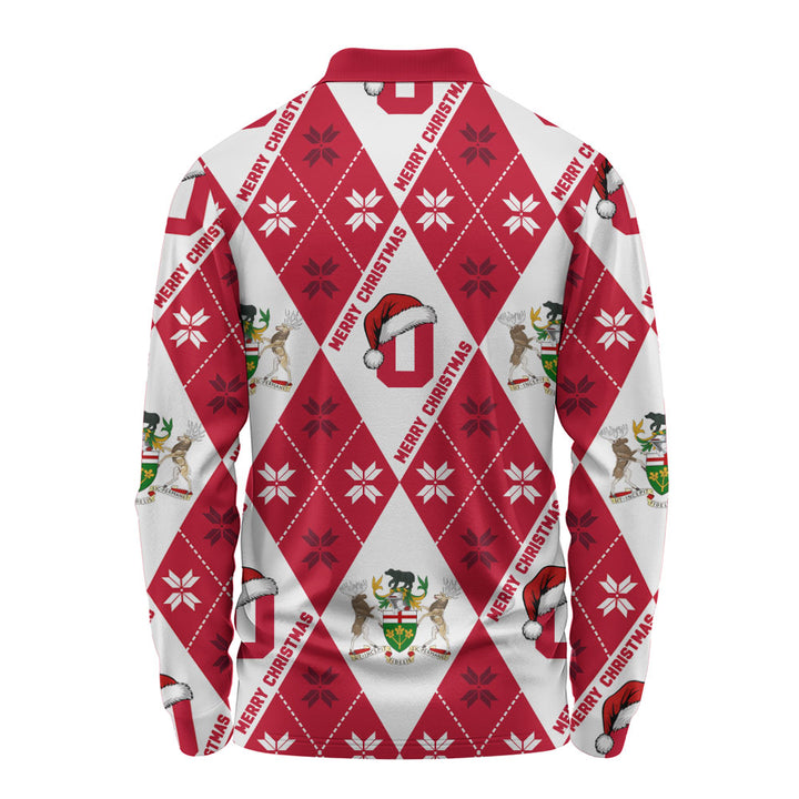 Ontario Long Sleeve Polo Shirt Christmas Argyle Pattern With Royal Crest