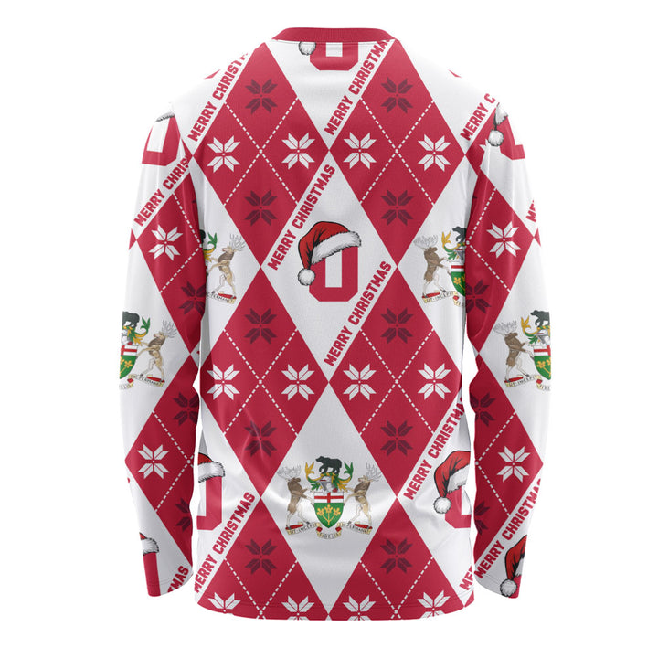 Ontario Long Sleeve T-Shirt Christmas Argyle Pattern With Royal Crest