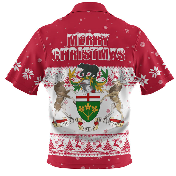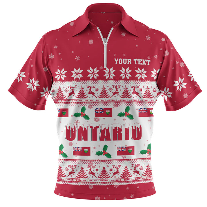 Ontario Zip Polo Shirt Christmas Knit Style Snowflake Reindeer