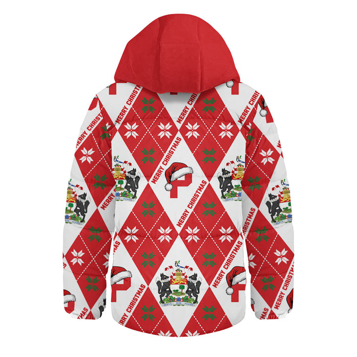 Prince Edward Island Hooded Padded Jacket Christmas Argyle Pattern With Royal Crest