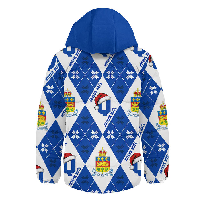 Quebec Hooded Padded Jacket Christmas Argyle Pattern With Royal Crest