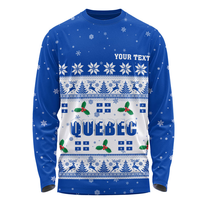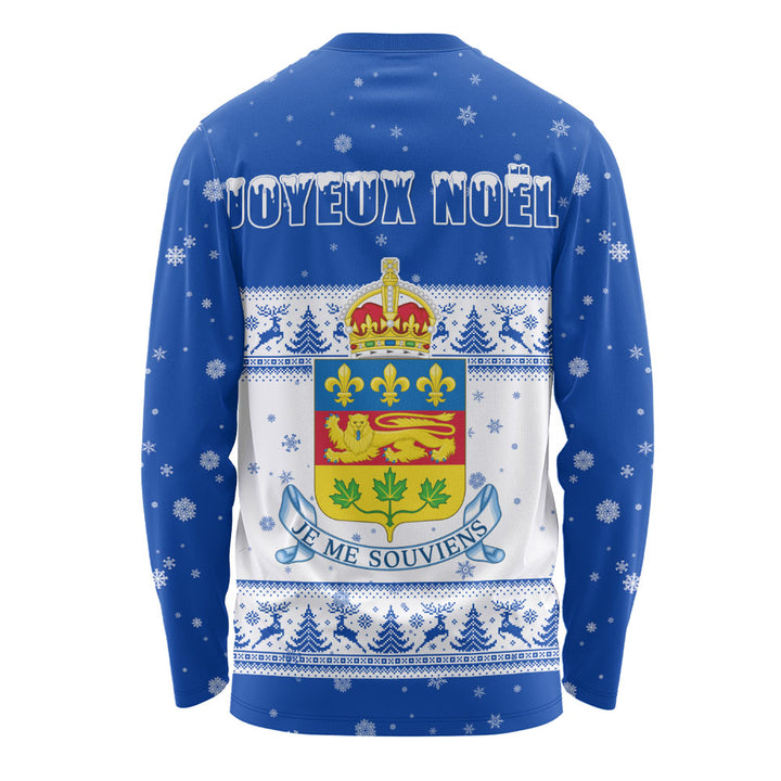 Quebec Long Sleeve T-Shirt Christmas Knit Style Snowflake Reindeer