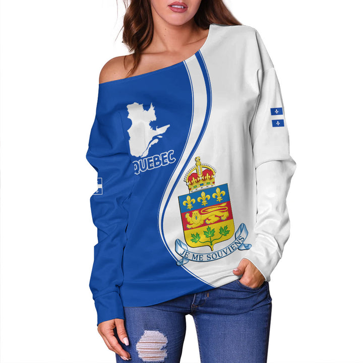 Quebec Off Shoulder Sweatshirt Canada Territories Pride