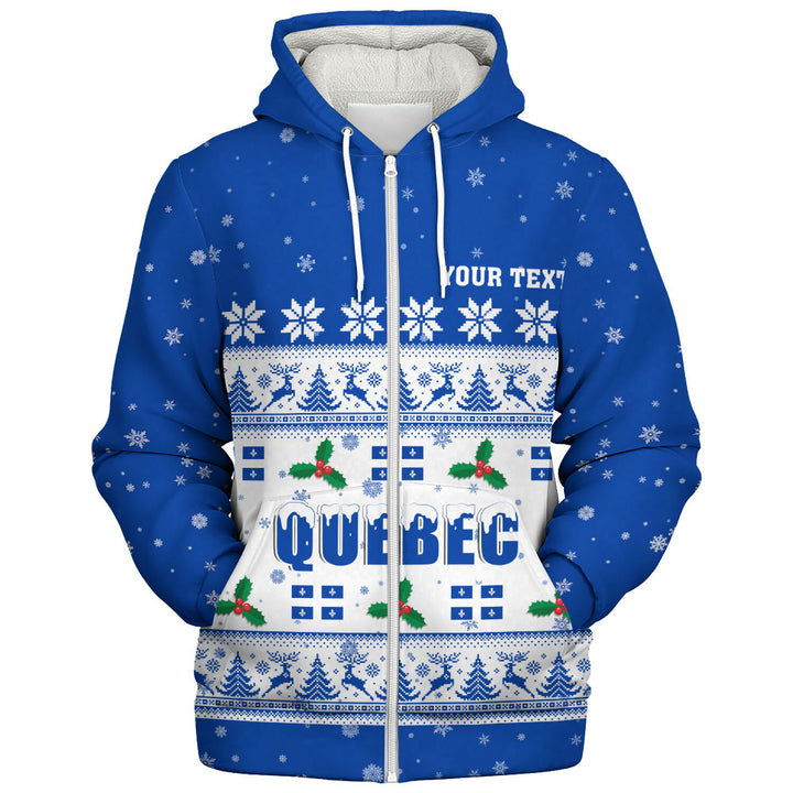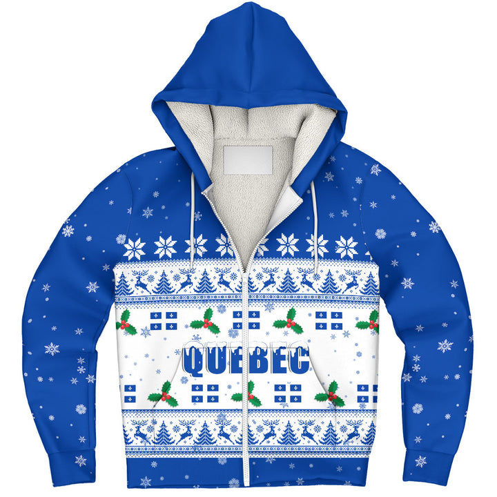 Quebec Sherpa Hoodie Christmas Knit Style Snowflake Reindeer