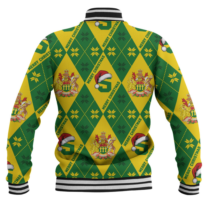Saskatchewan Baseball Jacket Christmas Argyle Pattern With Royal Crest
