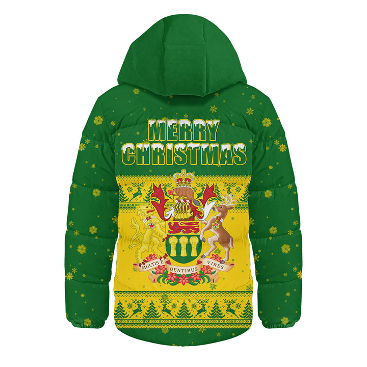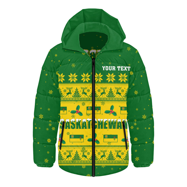 Saskatchewan Hooded Padded Jacket Christmas Knit Style Snowflake Reindeer