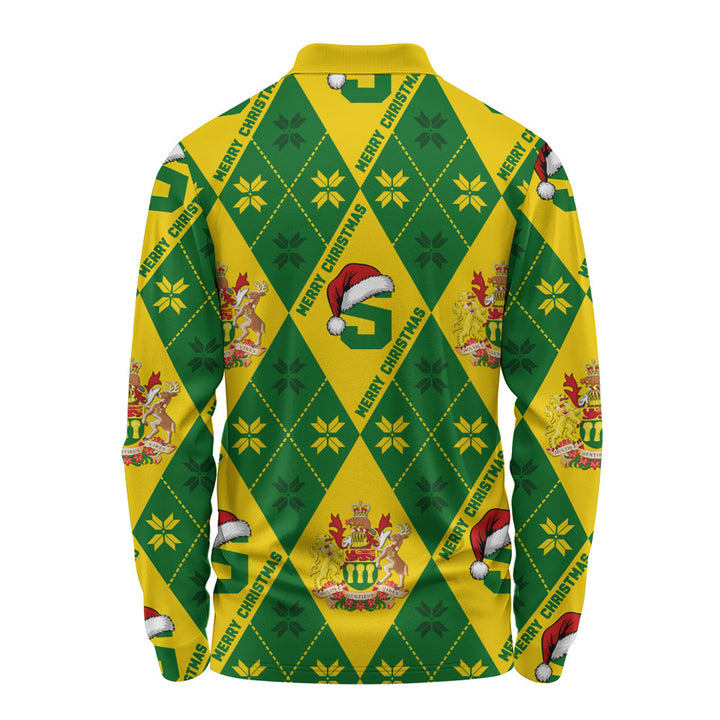 Saskatchewan Long Sleeve Polo Shirt Christmas Argyle Pattern With Royal Crest