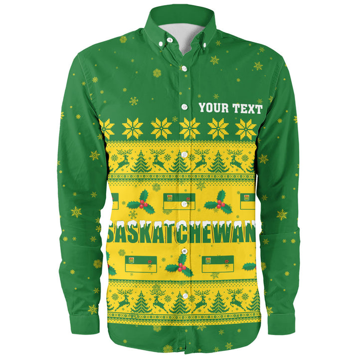 Saskatchewan Long Sleeve Shirt Christmas Knit Style Snowflake Reindeer
