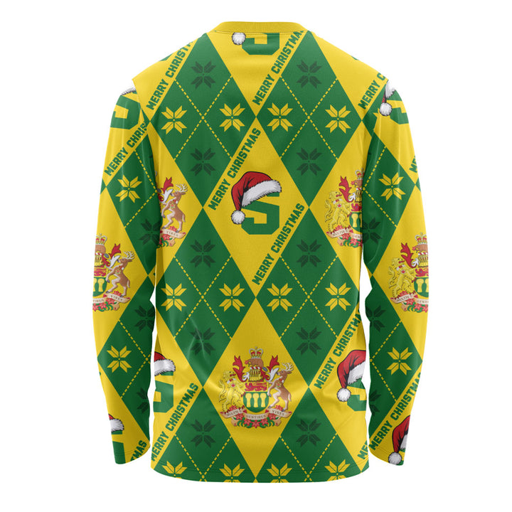 Saskatchewan Long Sleeve T-Shirt Christmas Argyle Pattern With Royal Crest