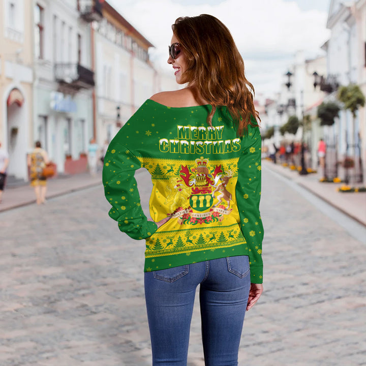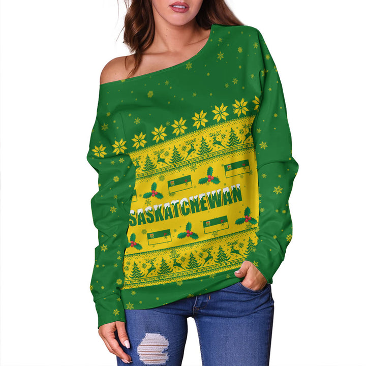 Saskatchewan Off Shoulder Sweatshirt Christmas Knit Style Snowflake Reindeer