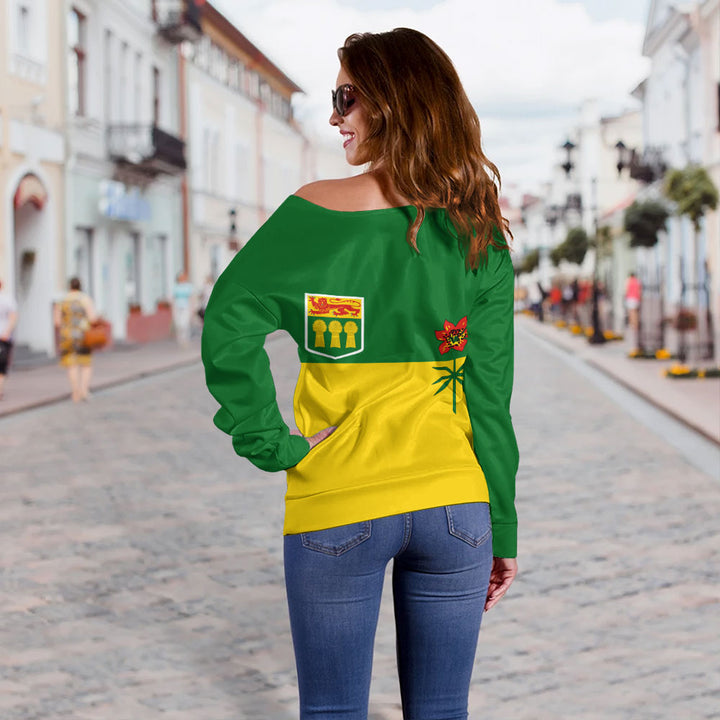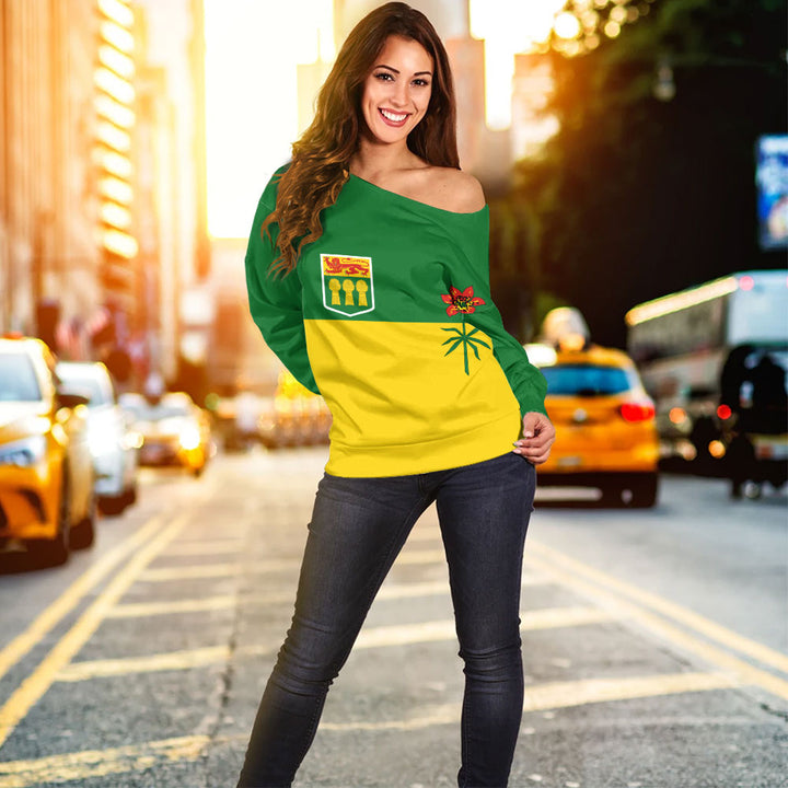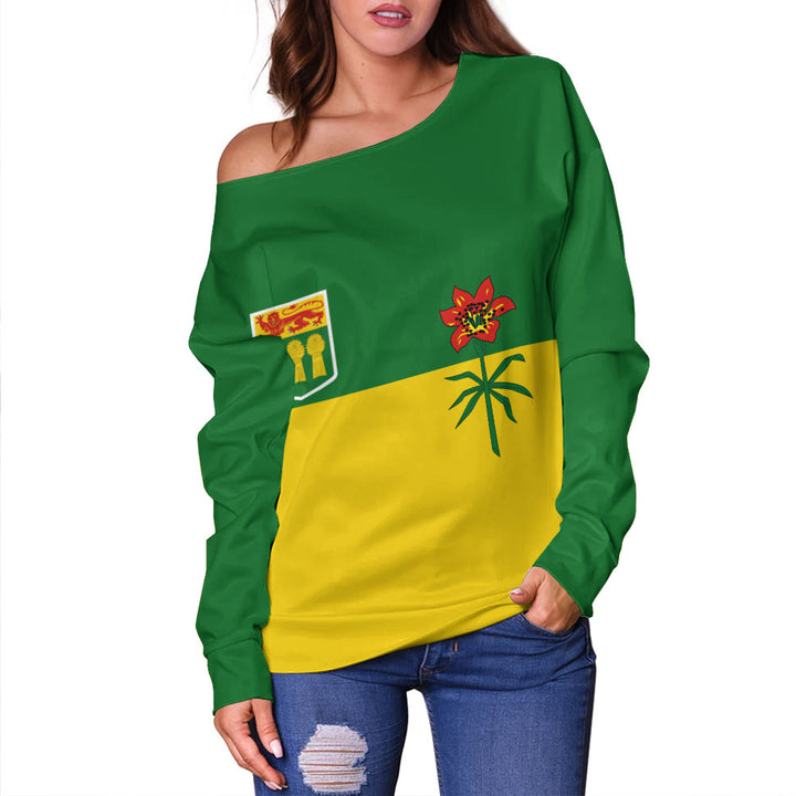 Saskatchewan Off Shoulder Sweatshirt Flag Minimalist Pride Style