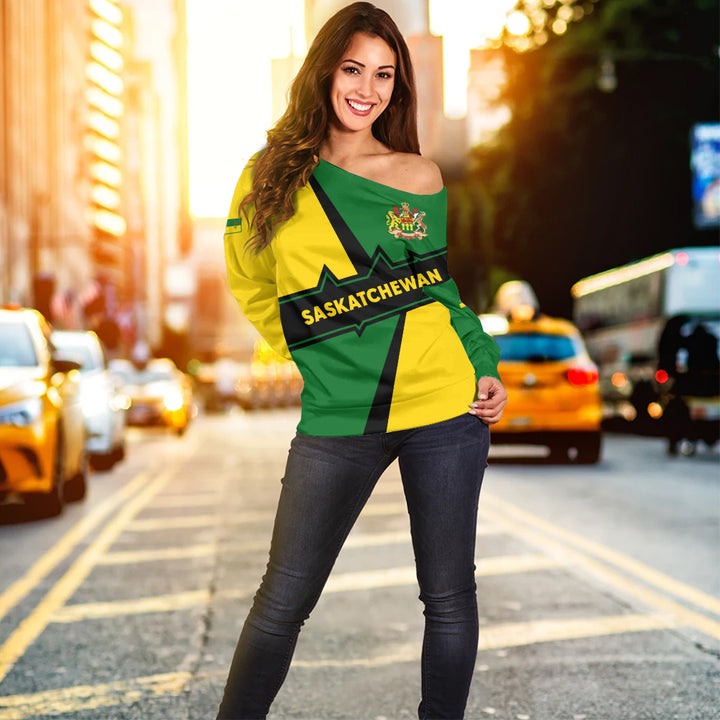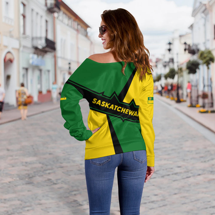 Saskatchewan Off Shoulder Sweatshirt Loyal True North Provincial Style